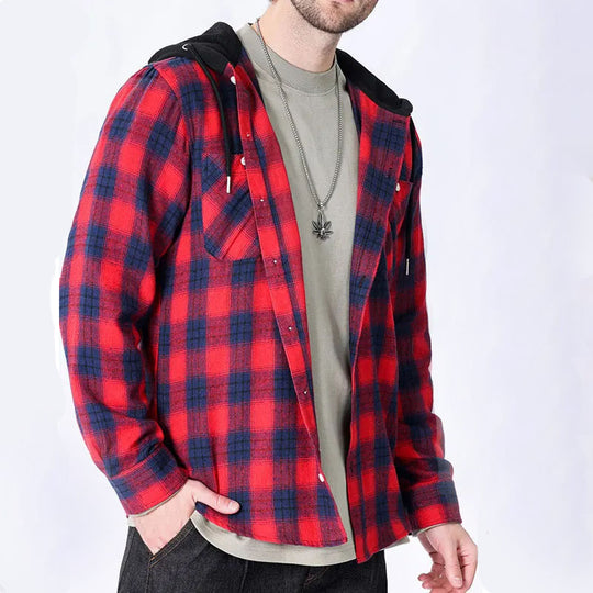 Flannel Hooded Plaid Shirt Jacket