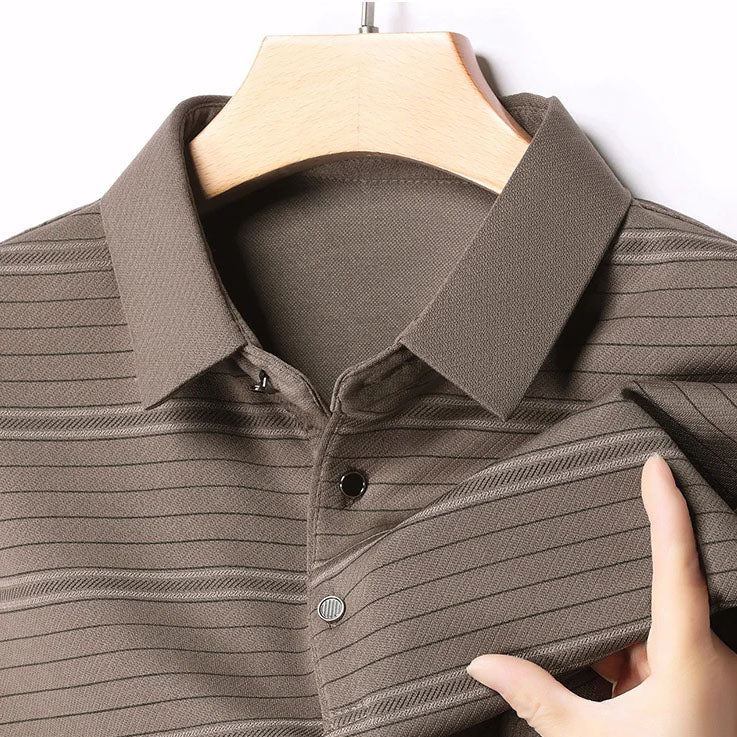 The Northway Wool-Blend Knit Polo is built for men who prefer restraint over noise. A fine wool-blend knit delivers a smooth, composed hand feel, while the subtle stripe texture and clean polo collar keep the silhouette sharp without trying too hard. Balanced warmth, controlled stretch, and an assured finish—this is polish that holds its ground.