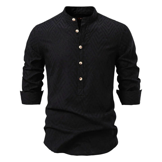 Henley Collar Linen Top Shirt