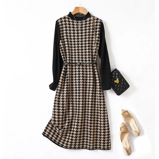 Milana Houndstooth Turtleneck Dress
