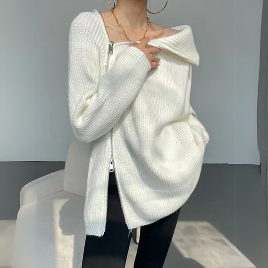 Evelyn Double-Zip Turtleneck Pullover